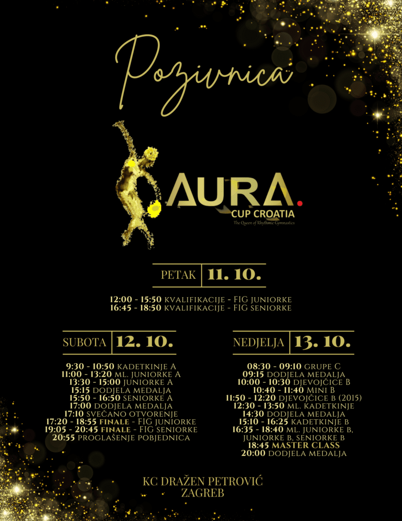 Organizator 8. FIG Aura Cupa, Gimnastički klub Aura, odlučio je kako će građanima Zagreba i njihovim gostima pokloniti slobodan ulaz na spektakl ritmičke gimnastike koji se od 11. do 13. listopada održava u Košarkaškom centru Dražen Petrović.